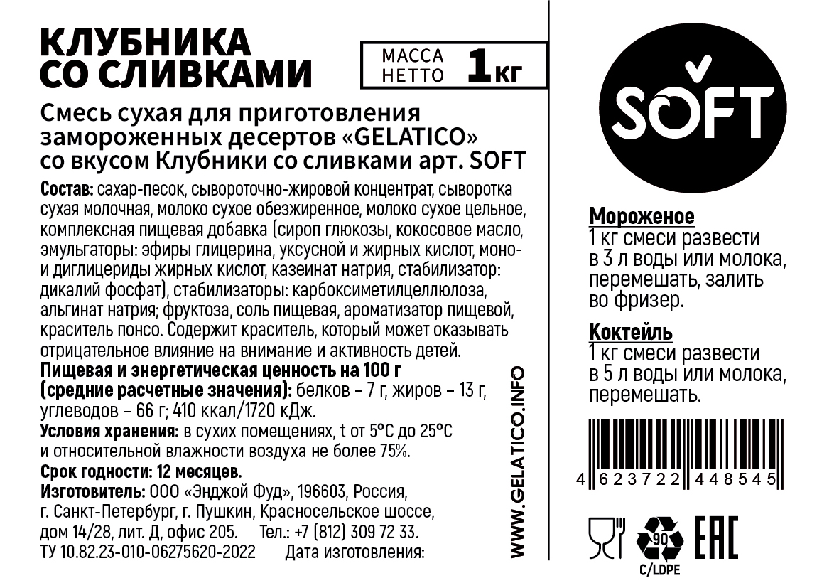 Смесь для мороженого "GELATICO" SOFT "Клубника со сливками" представляет собой специально разработанную смесь для мороженого и коктейлей на основе сухого молока, премиальных заменителей молочных жиров и других высококачественных ингредиентов.