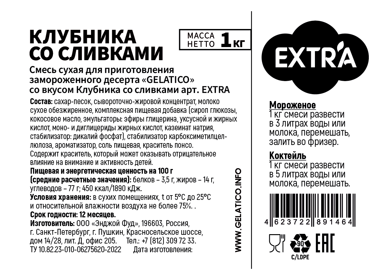 Смесь "GELATICO "EXTRA "Клубника со сливками" представляет собой специально разработанную смесь для мороженого и коктейлей на основе сухого молока, премиальных заменителей молочных жиров и других высококачественных ингредиентов.