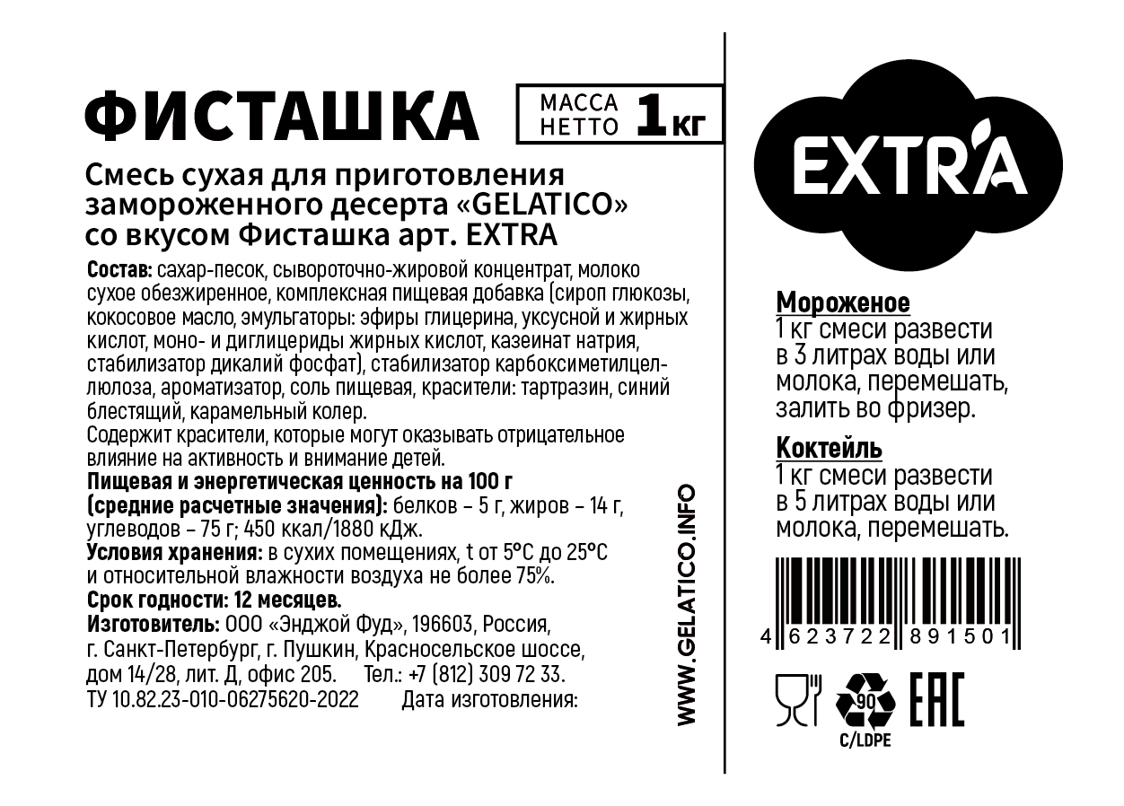 Смесь "GELATICO "EXTRA "Фисташка" представляет собой специально разработанную смесь для мороженого и коктейлей на основе сухого молока, премиальных заменителей молочных жиров и других высококачественных ингредиентов.