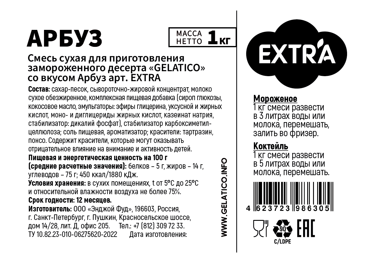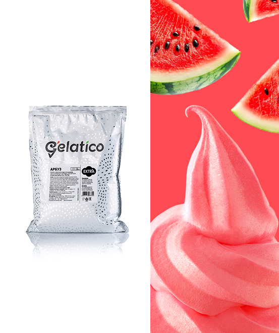 Смесь "GELATICO "EXTRA "Арбуз" представляет собой специально разработанную смесь для мороженого и коктейлей на основе сухого молока, премиальных заменителей молочных жиров и других высококачественных ингредиентов.
